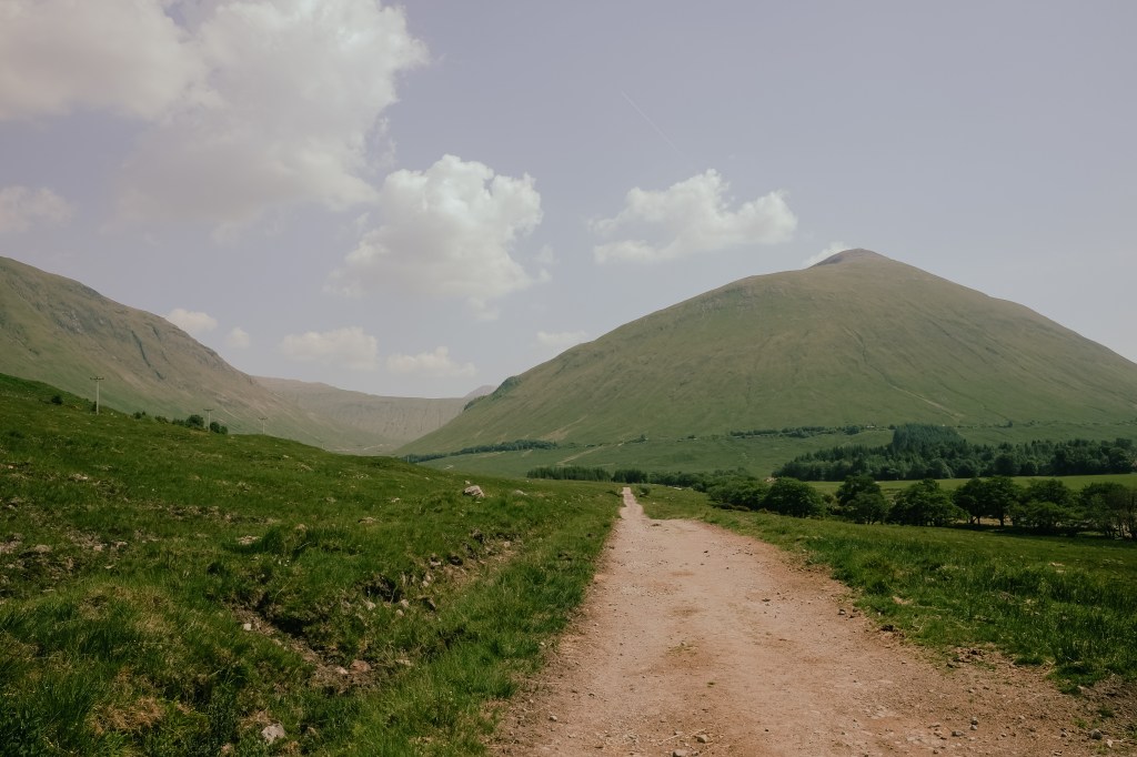 By the time I’d headed up and over the Devil’s Staircase and caught the first glimpses of Ben Nevis on the horizon I was starting to feel nauseous, dizzy, and a bit shit. I stopped and sat beneath a tree for several hours, waiting for the sun to lower before continuing, but on trying to get moving again I found my pack felt heavier than ever, and was struggling to put one foot in front of the other. I had earnt myself a nice dose of heat exhaustion and felt like a total idiot for thinking I could walk all day with no shade in such heat with no consequence.