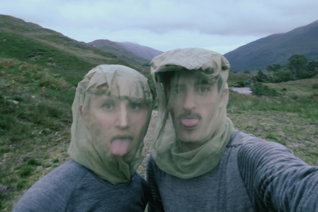 As night fell we found a nice little camp spot neside the 4×4 track and I managed to dive into my tent without being followed by too many midges. The same couldn’t be said for Ayoob who had not yet mastered the anti midge tent entry method, and spent some time fighting the little bastards. He won this battle, but the war was to be a long one. It takes a while to re-adjust to the fact that you are actually allowed to put tents up in Scotland, and I couldnt help thinking we should be further from this track, out of sight, in a little woodland. Spirits were high today, and we are both hyped for our first full day tomorrow, we are aiming to reach A’chiul bothy, which is 34 miles into the trip total.