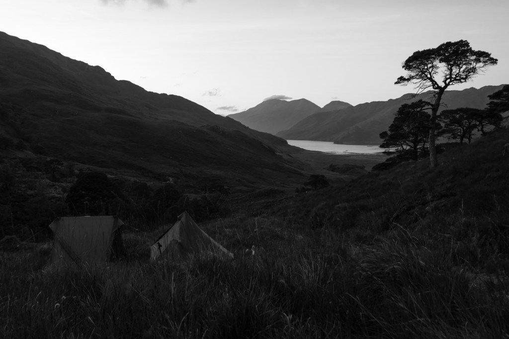 It was certainly ambitious to try and reach Barrisdale Bay from A’chuil in one go and we ended up making camp a couple of miles short, in Glenn Undulain. There are a couple of big rocks beneath my tent and I’m not convinved this will be the best sleep.