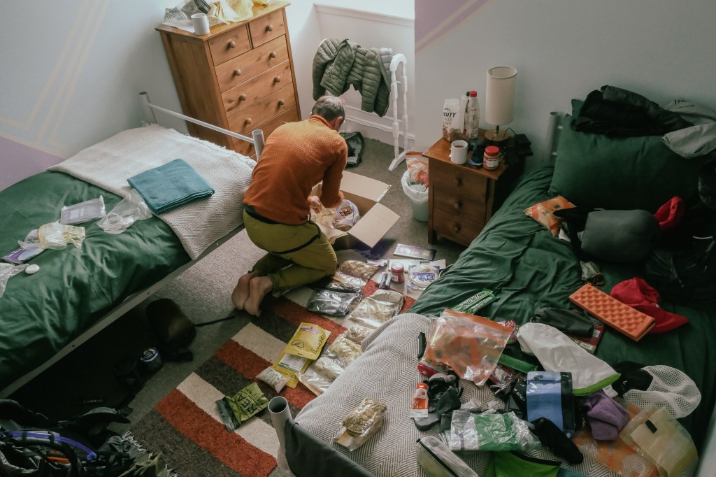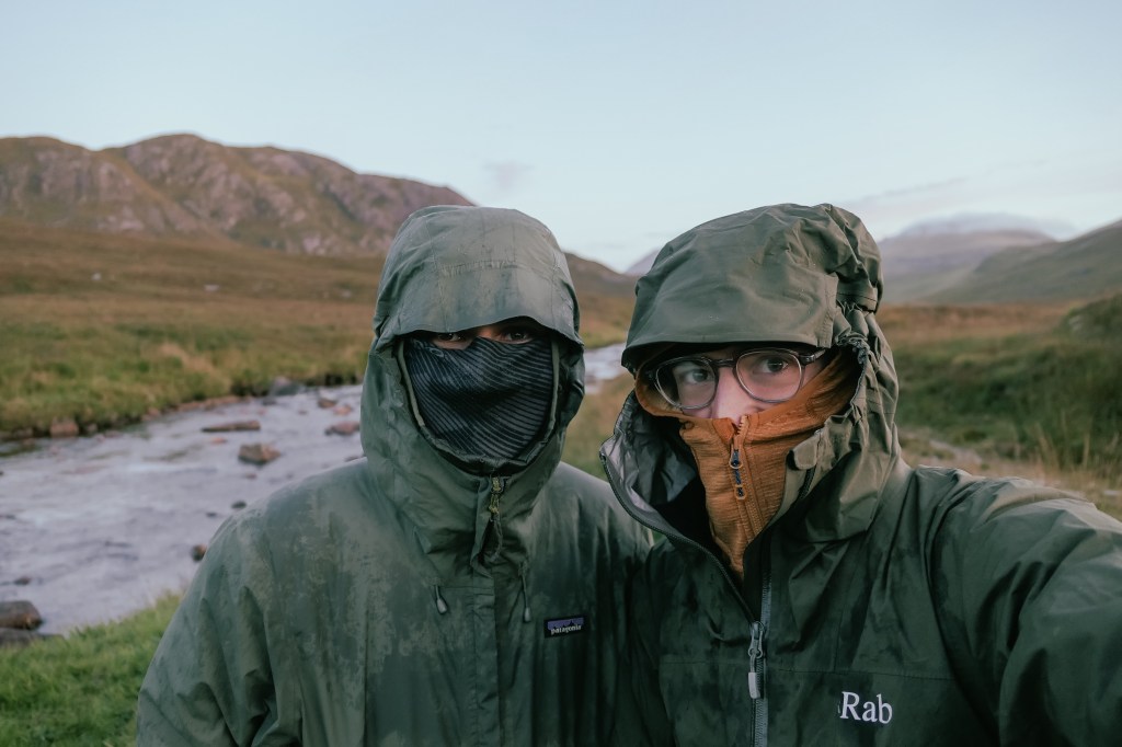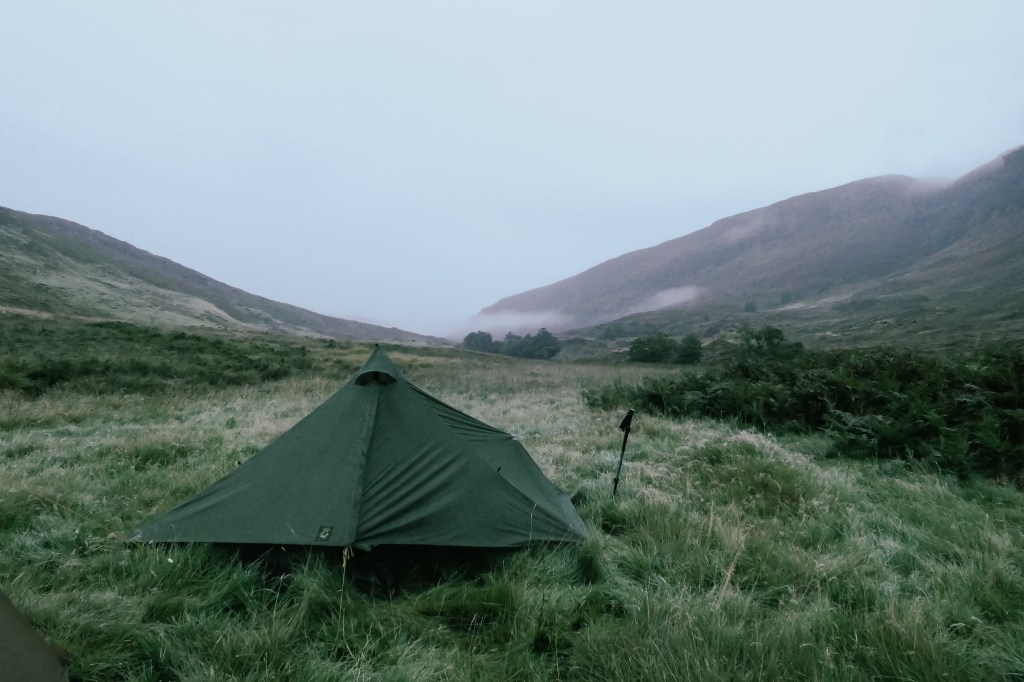 The heavens opened on us hard last night ready for our first proper day of hard weather. All the paths were rivers, and my feet were freezing. All the ‘not paths’ were squishy bogs, but these we were getting used to.