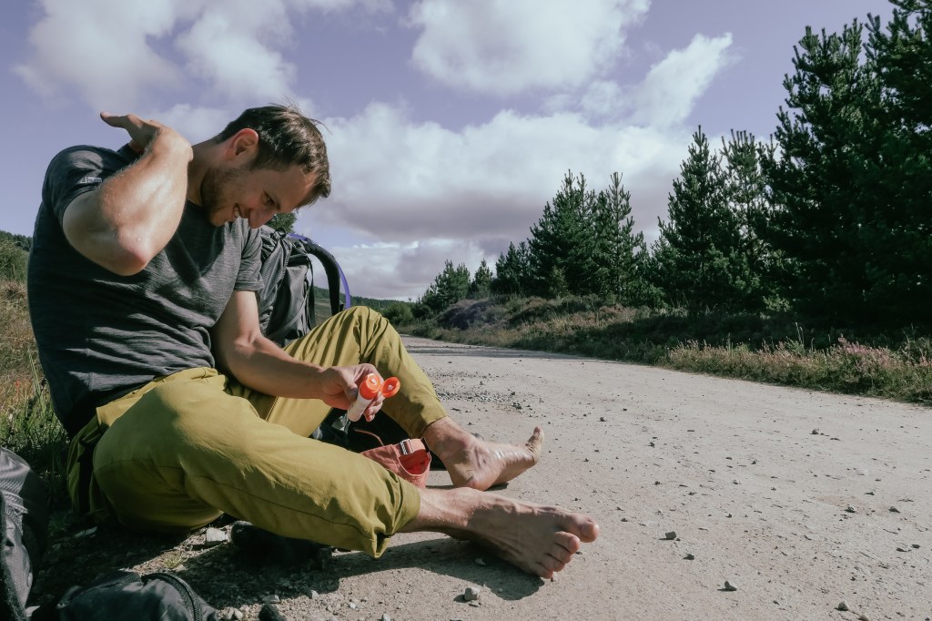 After a slow, foggy start to the day we bumped into Rebecca, the first and only person we would see all day long. She was a runner and also attempting the CWT, but with an ultra-light weight set up. She’d reached the same point as us in three less days, was sleeping in a bivvy bag, was absolutely plastered in midge bites, and aimed to complete the journey in an impressive 9 days. We were both in awe of this performance but she modestly put it all down to the light pack weight.