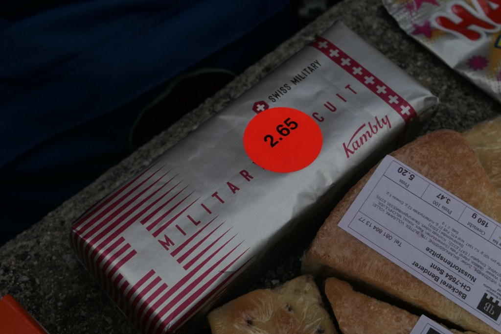 A few snack breaks broke up this section including one in which Andrew did his best impression of an agressive marmot, and we cracked open our Swiss Military Biscuits. These were easily the cheapest item in the supermarket and we expected them to be a bit bland, but were pleasantly suprised. If you’re going to Switzerland try the army biscuit.