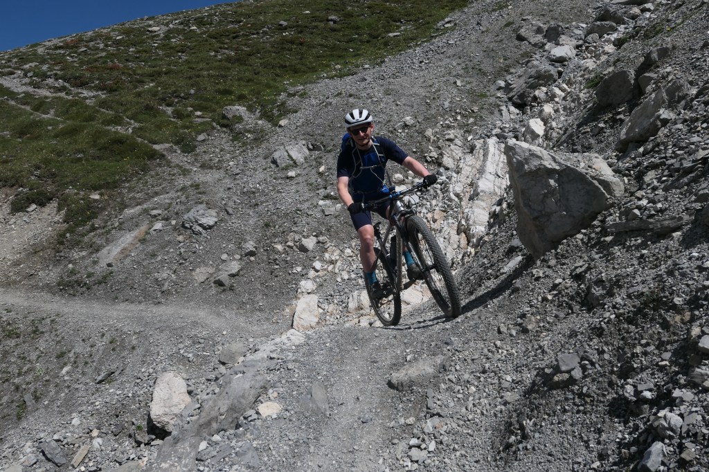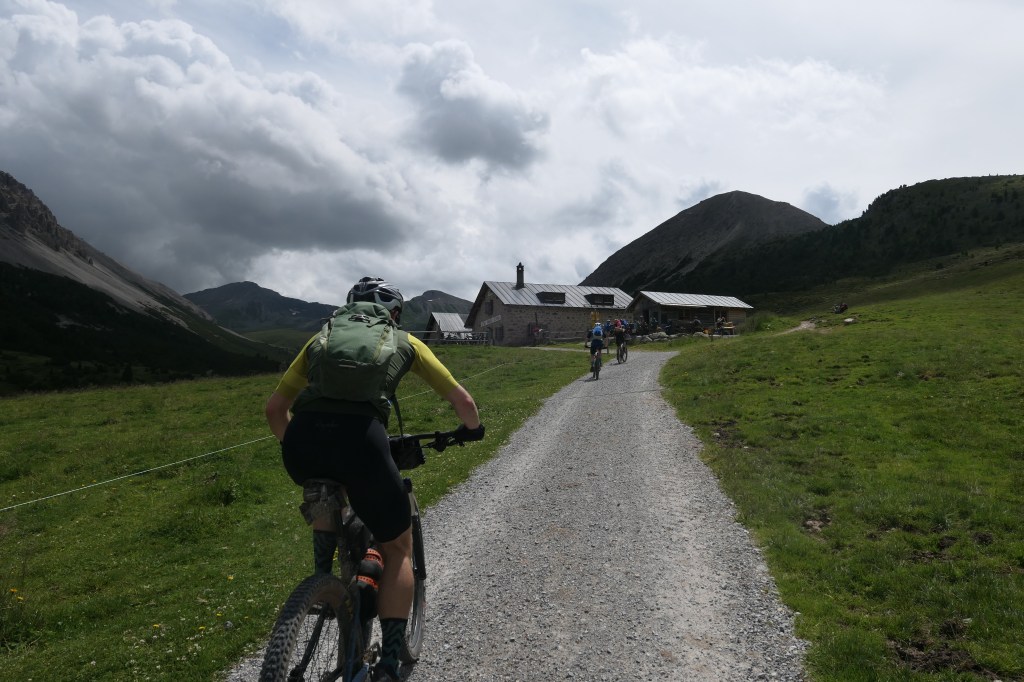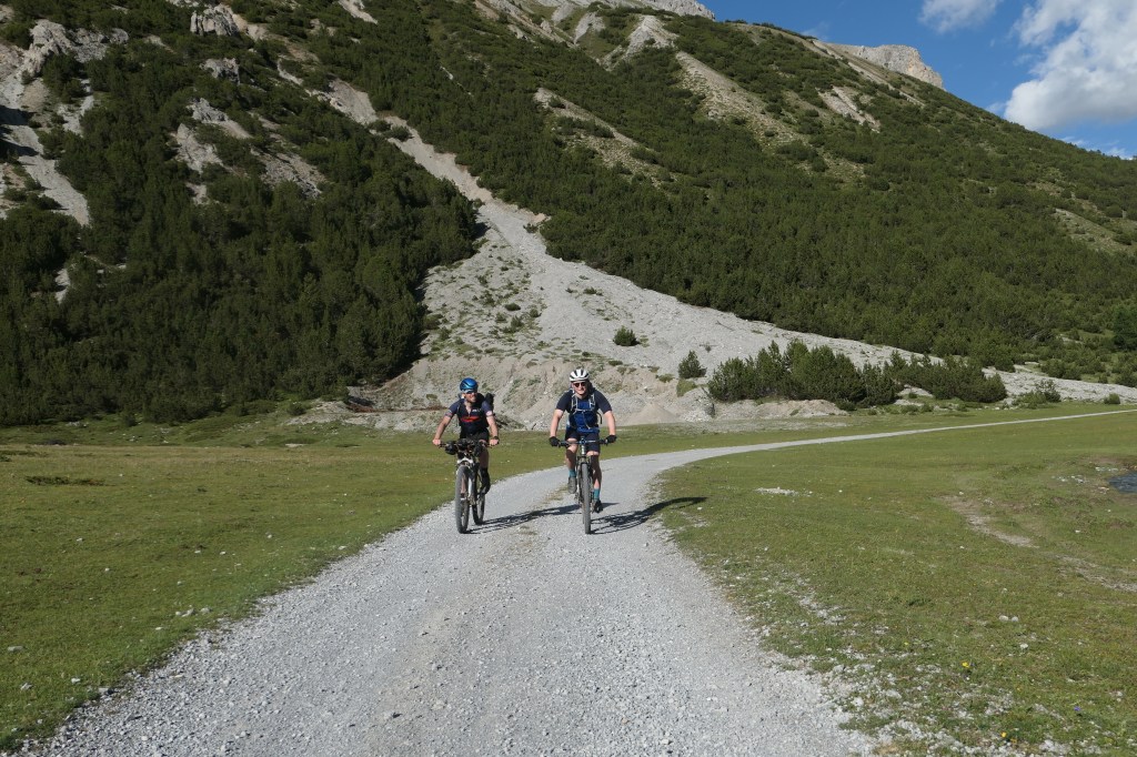 This days riding began with a huge climb out of Scuol with the aim of reaching a cheese deli hut high up in the mountains for a spot of lunch. The gravel road to the hut was long but not too steep, and we rode easily as a group, chatting and soaking up the environment and trees of the God Tamangur, the highest pine forest in Europe.