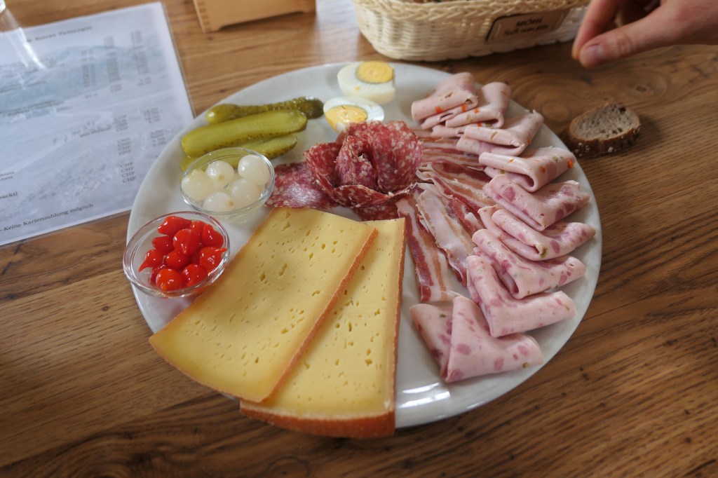 The climb to the cheese hut took nearly three hours, but boy was it worth it. The hut was small and cosy, and staffed by a freindly and talkative young woman who prepared us the classic spread of cheese, cured meats, and pickles. I think we all fell a little bit in love with her, and I breifly whisked myself off to a fantasy land where I married a Swiss dairy farmer and lived in the mountains. It’s amazing what a serving of cheese can do for you after three hours on the bike. Ayoob bravely ordered a glass of buttermilk too, just to really send his stomach into dairy based oblibvion. She asked about our journey and in return told us a little about her life, and we were on our way. I’m not sure I’d be cut out for farming.